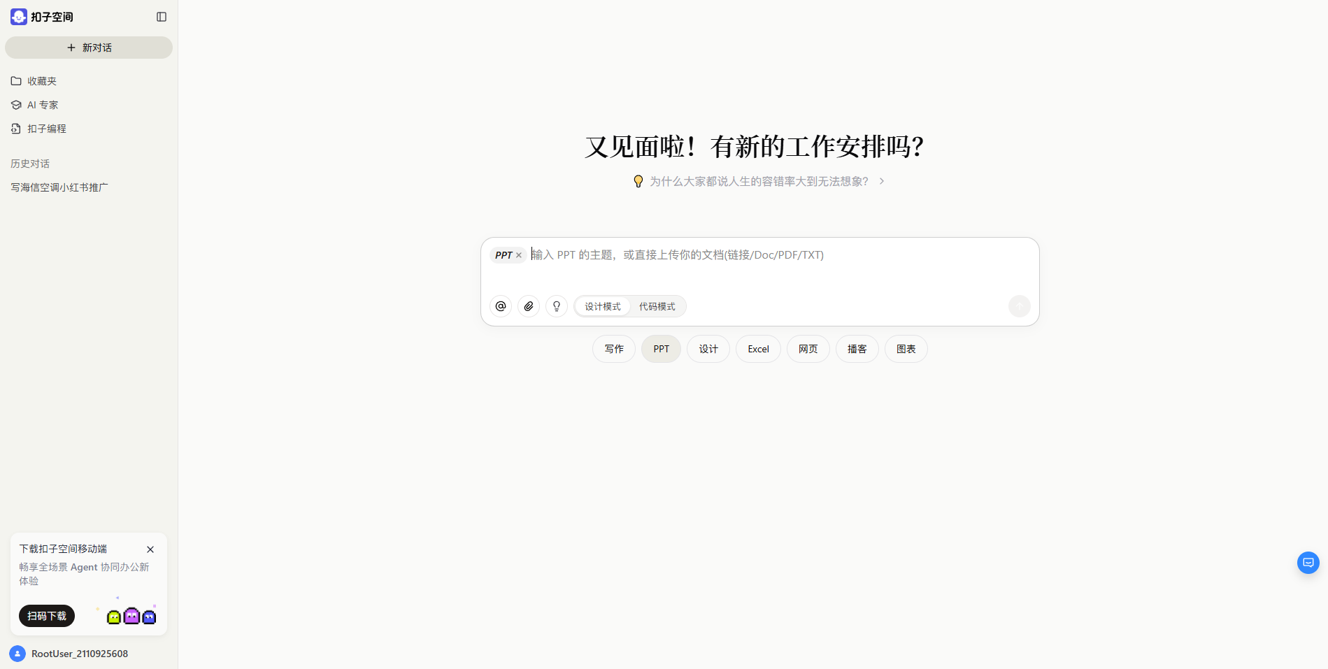 3. 扣子PPT(综合评分4.3/5.0)—— 字节系简洁派代表