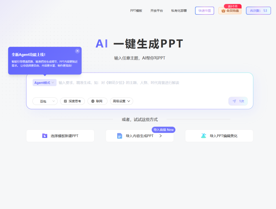 平台支持接入各种插件,比如做数据分析的PPT,它能直接调用图表插件。