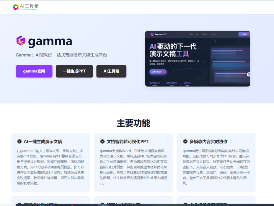 4. Gamma(综合评分4.1/5.0)—— 交互型PPT首选
