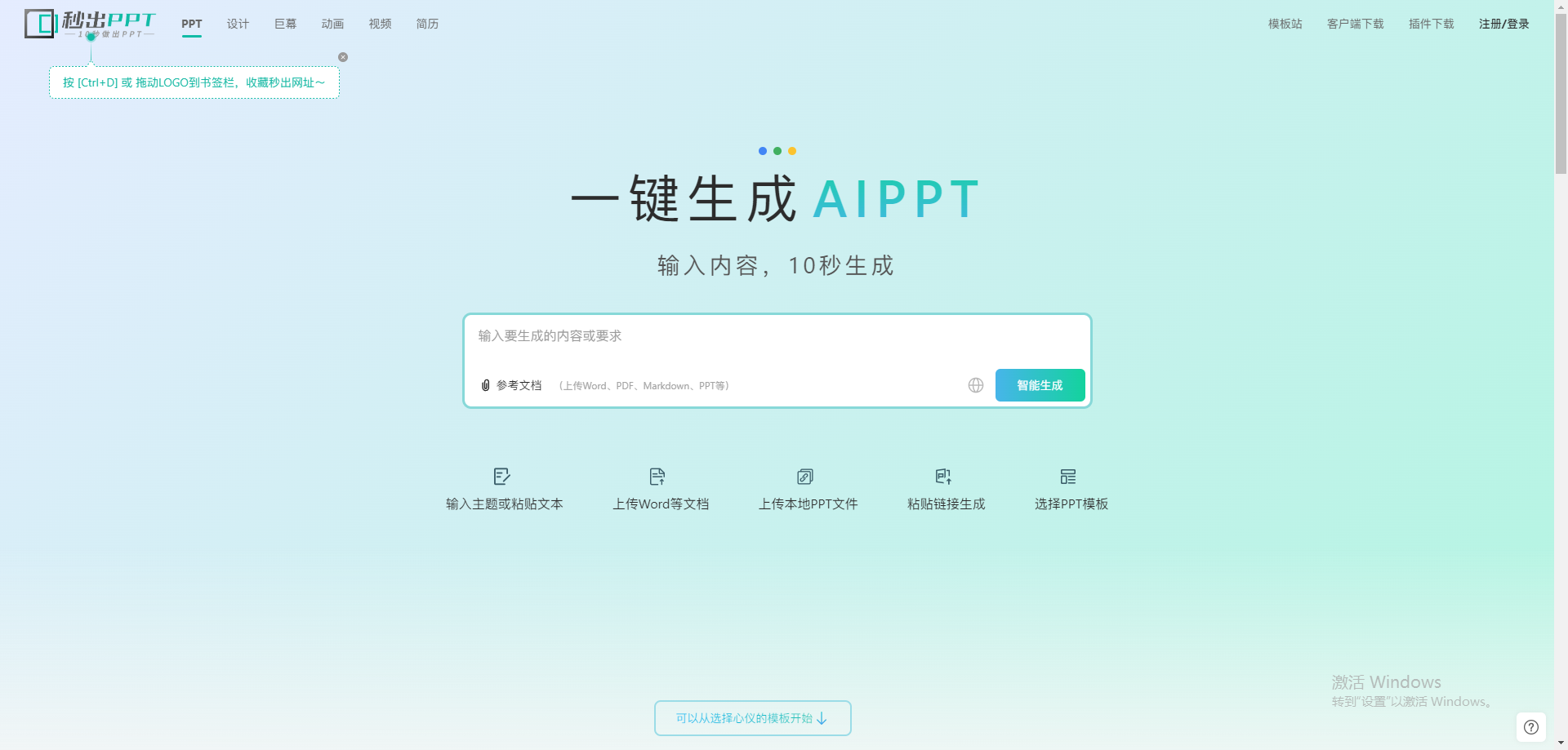 2. 秒出PPT(快速出稿,但复杂内容不精准)