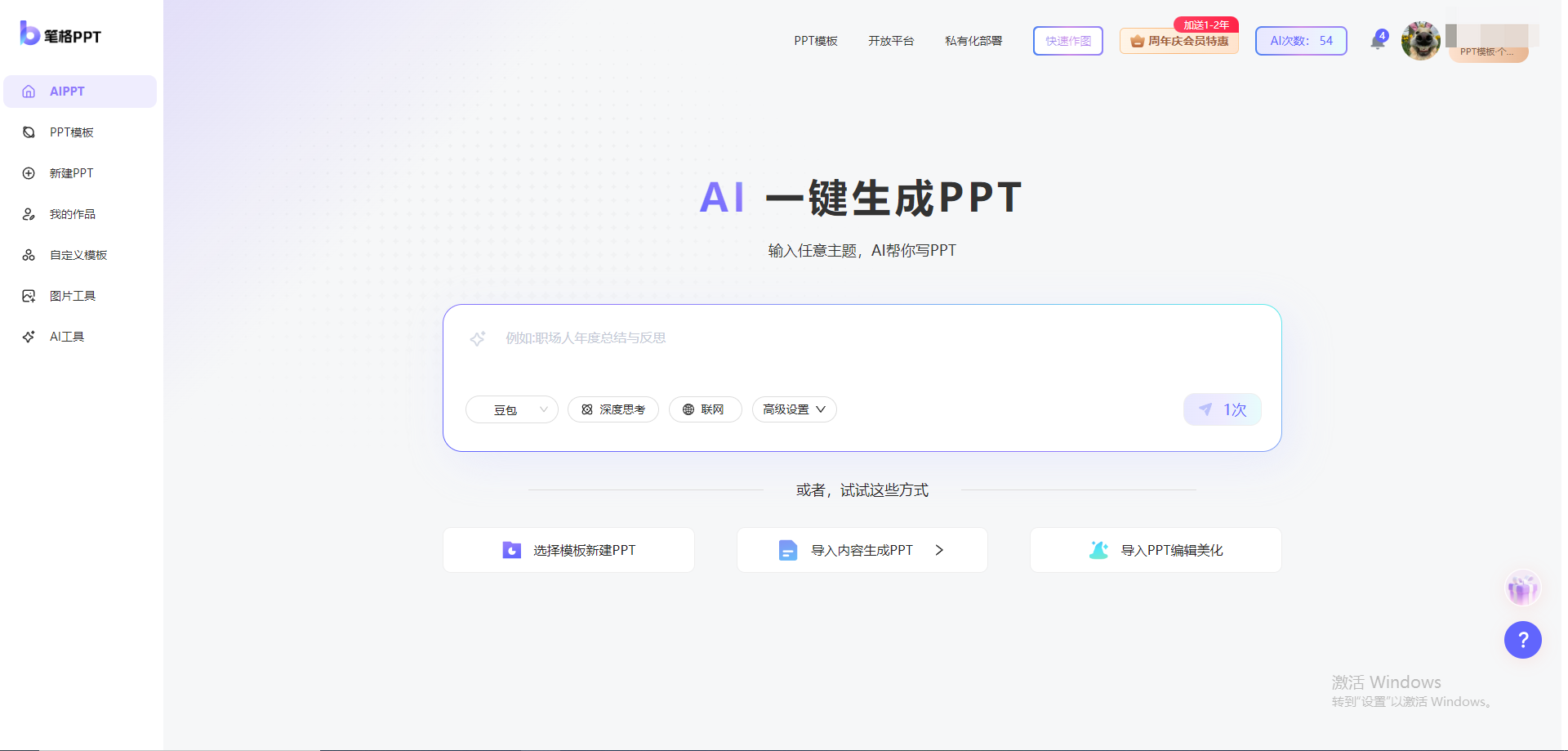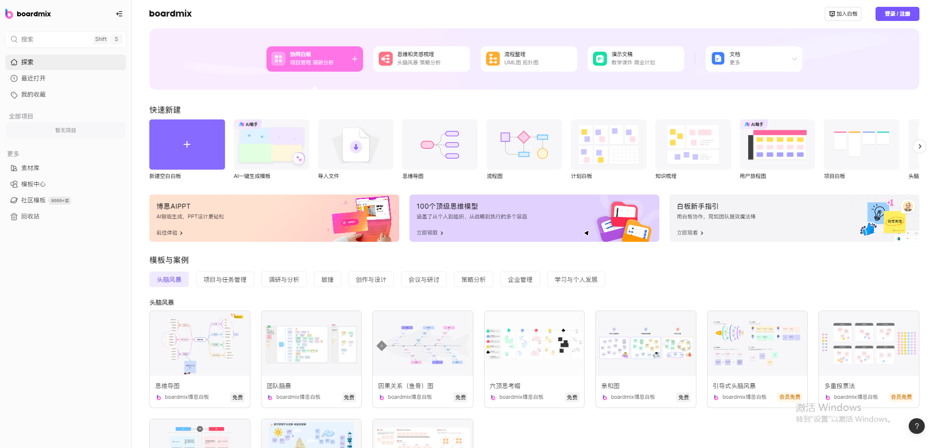 5. 博思AIPPT(白板功能有新意,模板风格受限)
